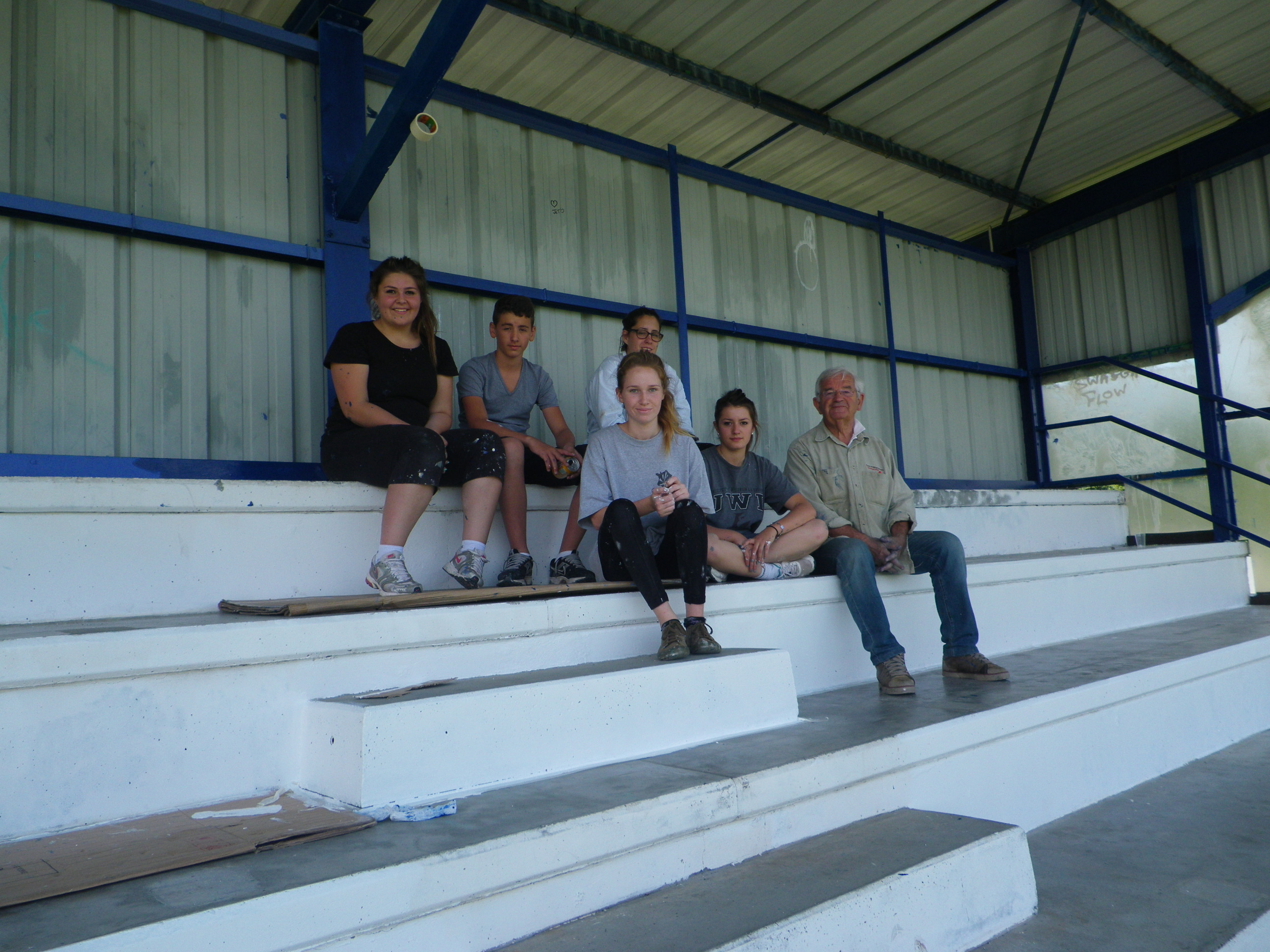 Les tribunes du stade municipal ont bénéficié d'une cure de jouvence à cette occasion. Bravo à l'équipe : Flora, Mathilde, Léa, Clara et Thomas, qui n'a pas ménagé ses efforts pour "redorer" l'image du village et atteindre les objectifs fixés en début de semaine par Geo, le maître des lieux.